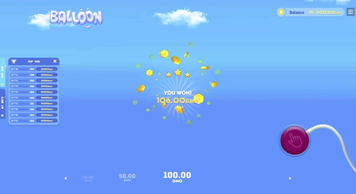 Balloon è un gioco in cui i giocatori “gonfiano” un palloncino virtuale, piazzando una puntata. Più il palloncino si espande, maggiore è il moltiplicatore della vincita, ma se scoppia prima che il giocatore decida di fermarsi, si perde la puntata. Il gioco si basa sul principio “rischia o incassa”, rendendolo dinamico e coinvolgente.